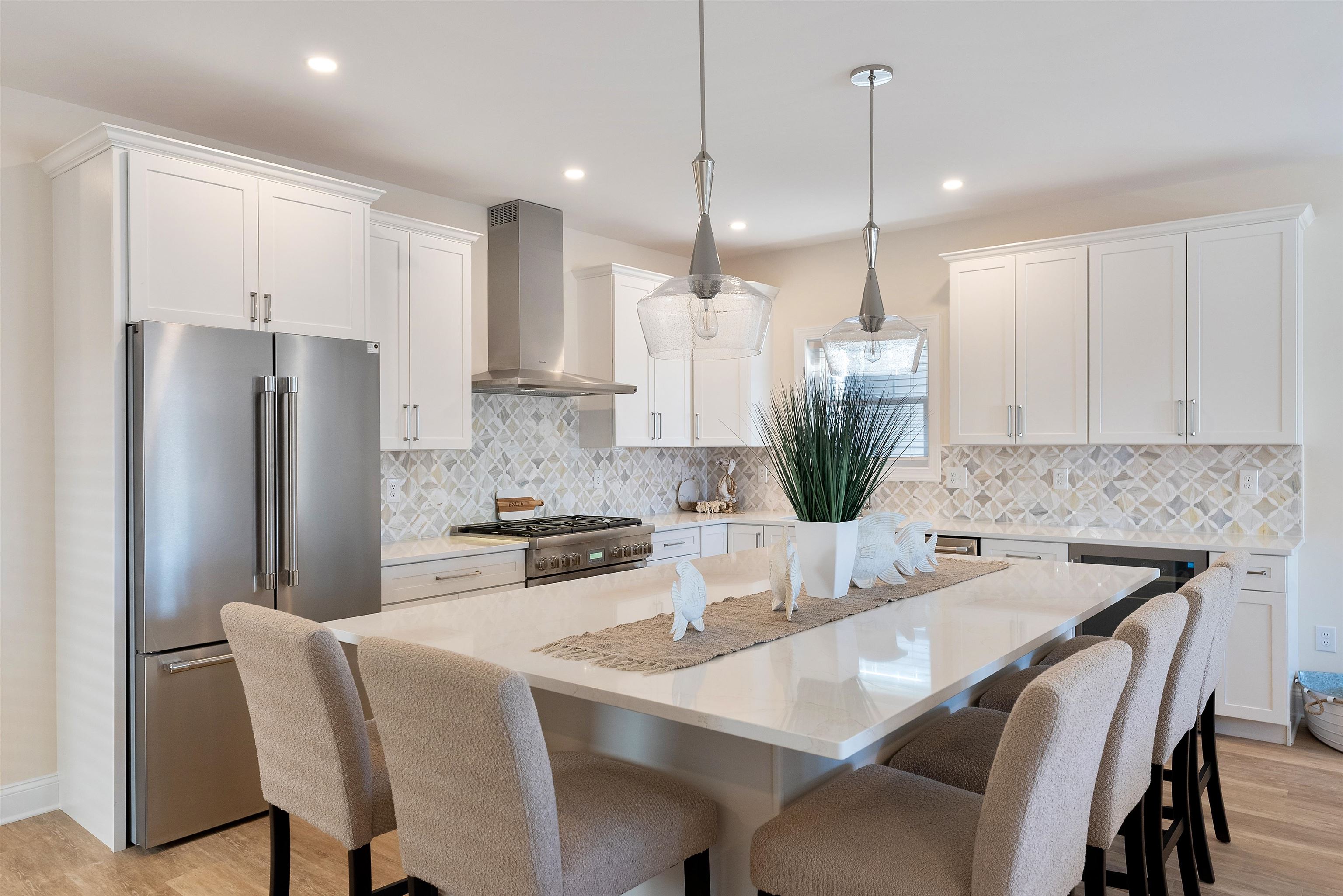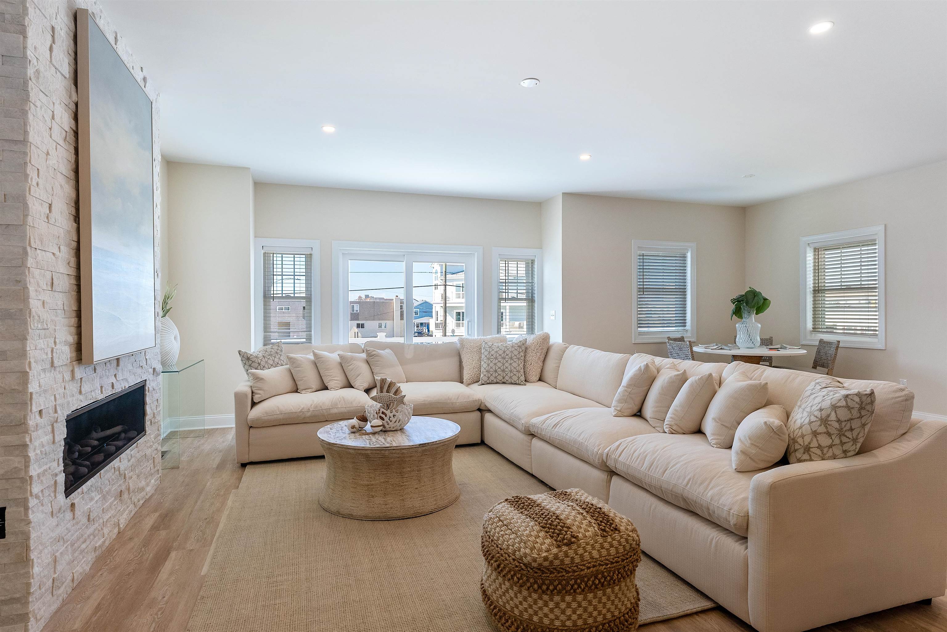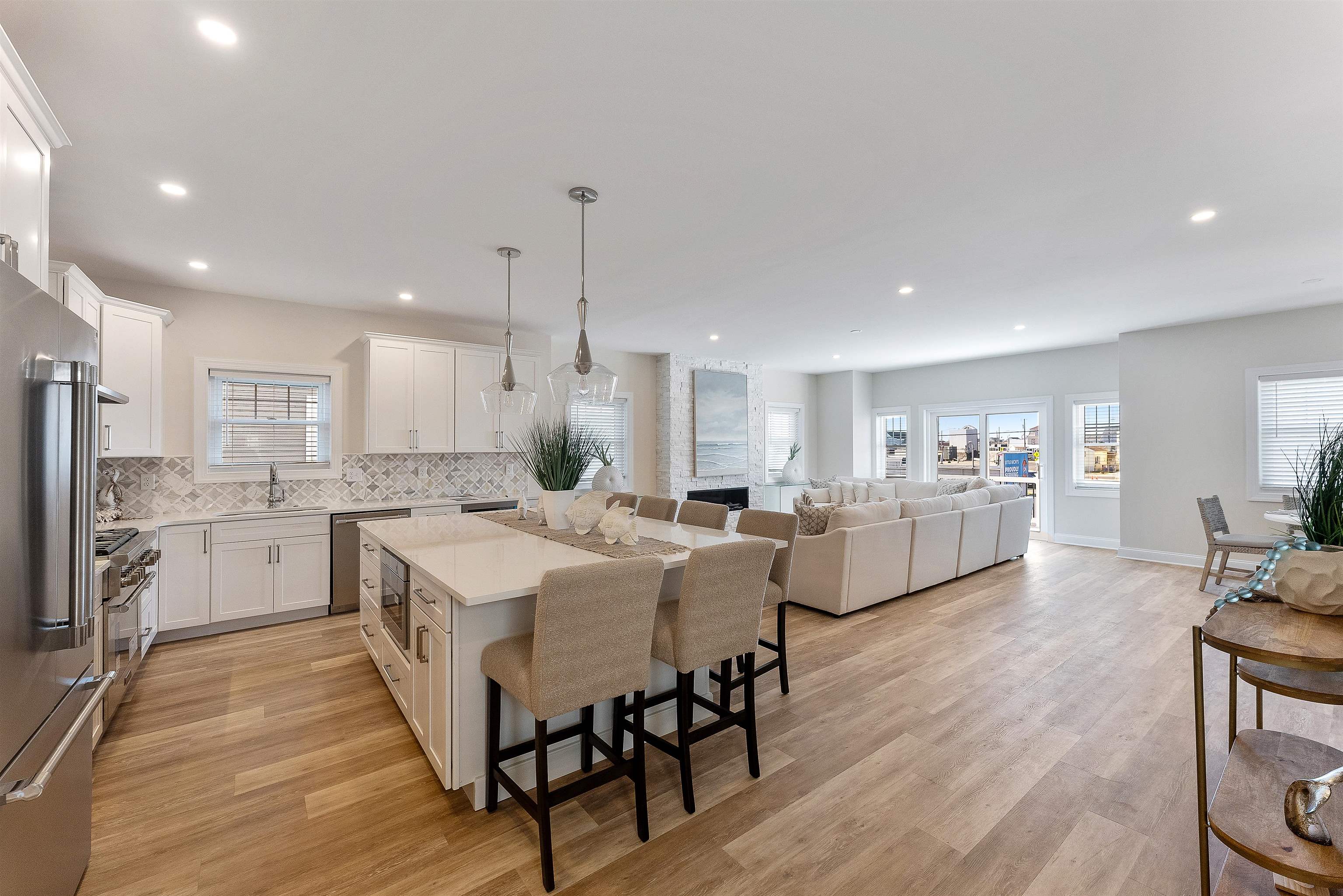 Open House: Sat and Sun 10-12 Discover coastal luxury in the highly sought-after Sea Wall area of North Wildwood. This stunning 5-bedroom, 3.5-bath home offers everything you need for upscale beach living—plus room for a pool! Step inside and be captivated by the spacious open-concept layout, anchored by an enormous kitchen island perfect for entertaining. Outfitted with smart appliances and premium finishes, the kitchen flows seamlessly into the dining and living area, where a sleek linear fireplace adds a modern, cozy touch. Enjoy water views from expansive exterior decks, perfect for morning coffee or evening sunsets. Whether you're hosting guests or relaxing with family, there's room for everyone with five generously sized bedrooms and three and a half beautifully appointed bathrooms.ust moments away from the picturesque seawall, you'll have the pleasure of enjoying peaceful sunrise strolls along the beach. With its perfect blend of luxury, comfort, and location, this beach home is ready for immediate purchase! --