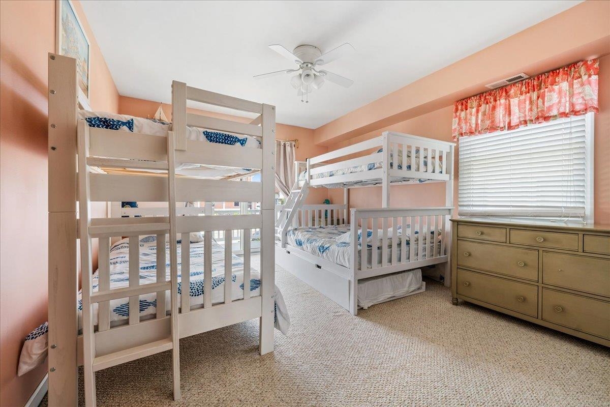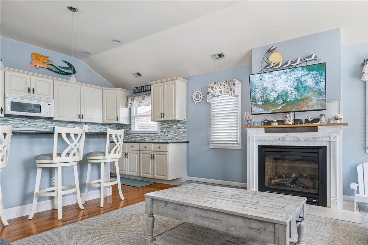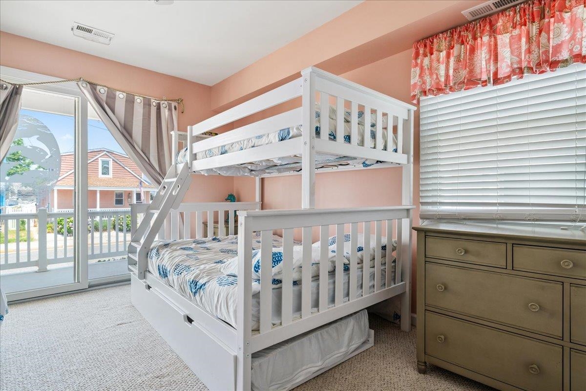 Down the shore everything’s all right, and it truly is at this beautifully upgraded upside-down style home, tucked away on a quiet one-way street in the peaceful bayside section of Wildwood. Whether you're looking for a second home, a forever spot, or just a place to soak in the sun and sea breeze, this is the one that’ll steal your heart. The bright, wide-open layout is made for shore living, with dramatic vaulted ceilings and a spacious great room that opens through double sliding glass doors to an oversized rear deck, perfect for coffee at sunrise or wine under the stars. “I got no time for the corner boys, down in the street makin’ all that noiseâ€, just peace, quiet, and the soft hum of the bay. Each of the four spacious (and themed) bedrooms offers direct access to an outdoor deck, where you can feel the sunshine and let the breeze roll in. The upstairs master suite is your private escape, complete with dual walk-in closets, a beautifully tiled ensuite bath, and its own deck out front, ideal for slow mornings and salty air. Upgrades throughout the home include newer Andersen Renewal windows and sliding doors on the upper level, rich hardwood floors in the foyer and kitchen, custom paint and window treatments, a cozy gas fireplace, recessed lighting, and a stunning kitchen with granite countertops, beachy backsplash, and custom cabinetry with crown molding. Parking? We have it! 3 driveway spots plus space in the garage, and if you need more it's an easy block to park on. Dual-zone Nest-enabled central A/C and gas heat keep the home comfortable year-round. Newer Samsung washer and dryer add convenience, and outside, the fully fenced backyard features your very own private swim spa, perfect for pampering yourself or entertaining friends. So take that ride across the river to the Jersey side, you don’t have to go far. You’re already here. The first level offers three large bedrooms and a beautifully tiled full bath, while the upper level is reserved for the master retreat. With four total outdoor decks and every thoughtful upgrade already in place, all that’s left to do is move in and enjoy. Down the shore everything is alright, so schedule your showing today.