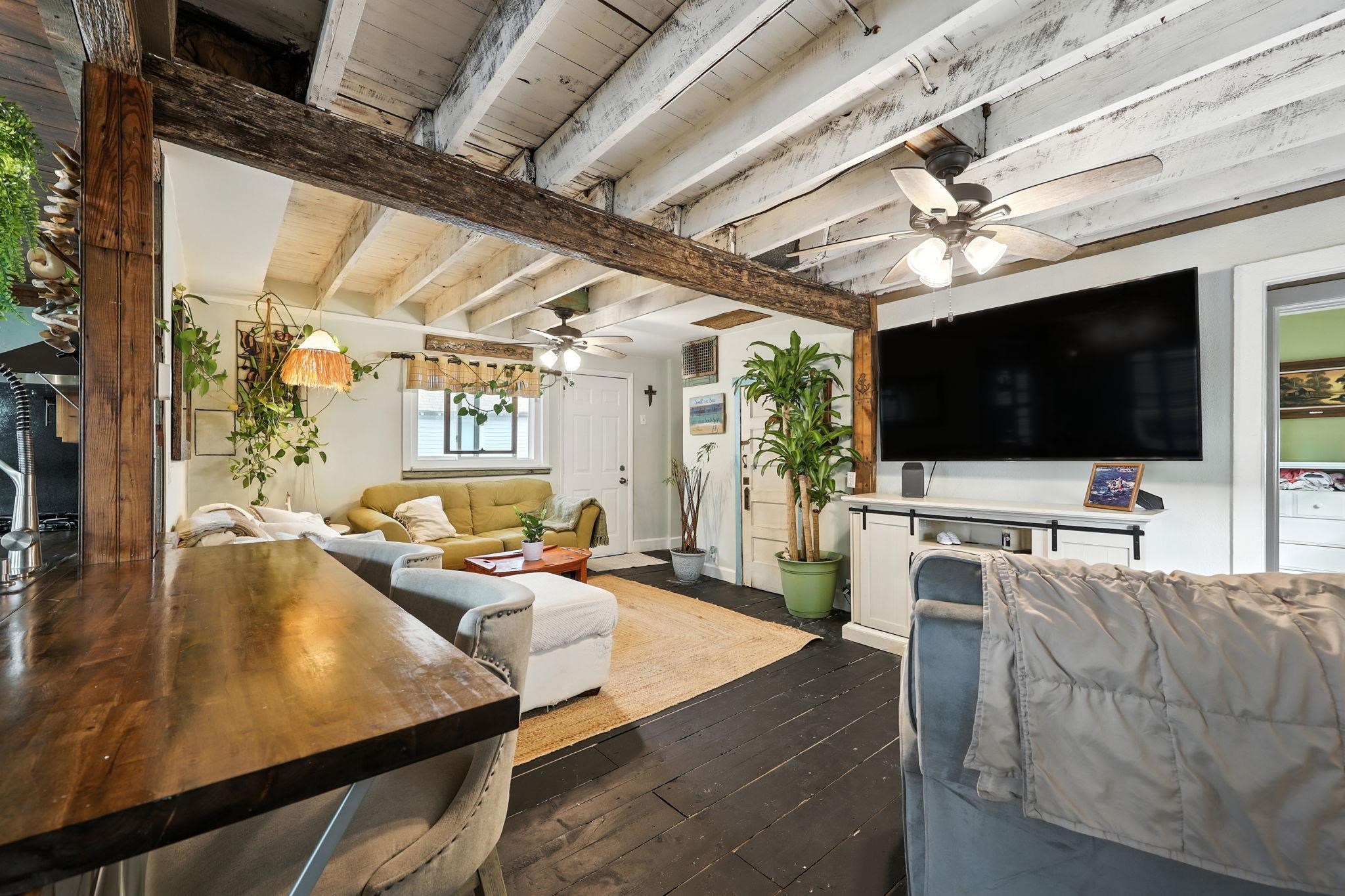 This quintessential Wildwood bungalow combines seaside charm with modern updates and an unbeatable outdoor entertaining space. With 3bedrooms and 1.5 bathrooms, it perfectly captures the relaxed energy of the shore while providing all the comforts of year-round living. Additionally, the home features solar panels, enhancing efficiency and sustainability in coastal living. Inside, a warm and welcoming atmosphere is enhanced by reclaimed wood accents, rustic details, and natural textures that showcase the home’s unique personality. The kitchen is a rustic-chic retreat, featuring wood cabinetry and a peninsula-style counter with seating for two, ideal for both meal prep and casual dining. Sunlight pours through the windows, filling the living areas with natural light and reinforcing the home’s breezy, coastal vibe. The home offers a first-floor bedroom, perfect for guests or flexible living arrangements, while upstairs you’ll find two additional bedrooms, each designed as a restful retreat after fun-filled days by the shore. The 1.5 bathrooms are thoughtfully designed, balancing style with everyday convenience. Step outside, and the home truly shines. The spacious backyard is a private oasis designed for both relaxation and entertainment. Enjoy summer evenings at the tiki-style bar and covered lounge, host barbecues with friends, or unwind in the tranquility of the lush greenery. After a day of sand and surf, the outdoor shower offers the perfect finishing touch to coastal living. Additional highlights include a driveway for convenient parking and an unbeatable location within walking distance to the boardwalk, beach, and local bars. Whether you’re looking for a year-round residence or a vacation getaway, 3707 Park Blvd delivers. Its rare blend of character, functionality, resort-like outdoor living, and energy-efficient solar panels makes it a true Wildwood gem.