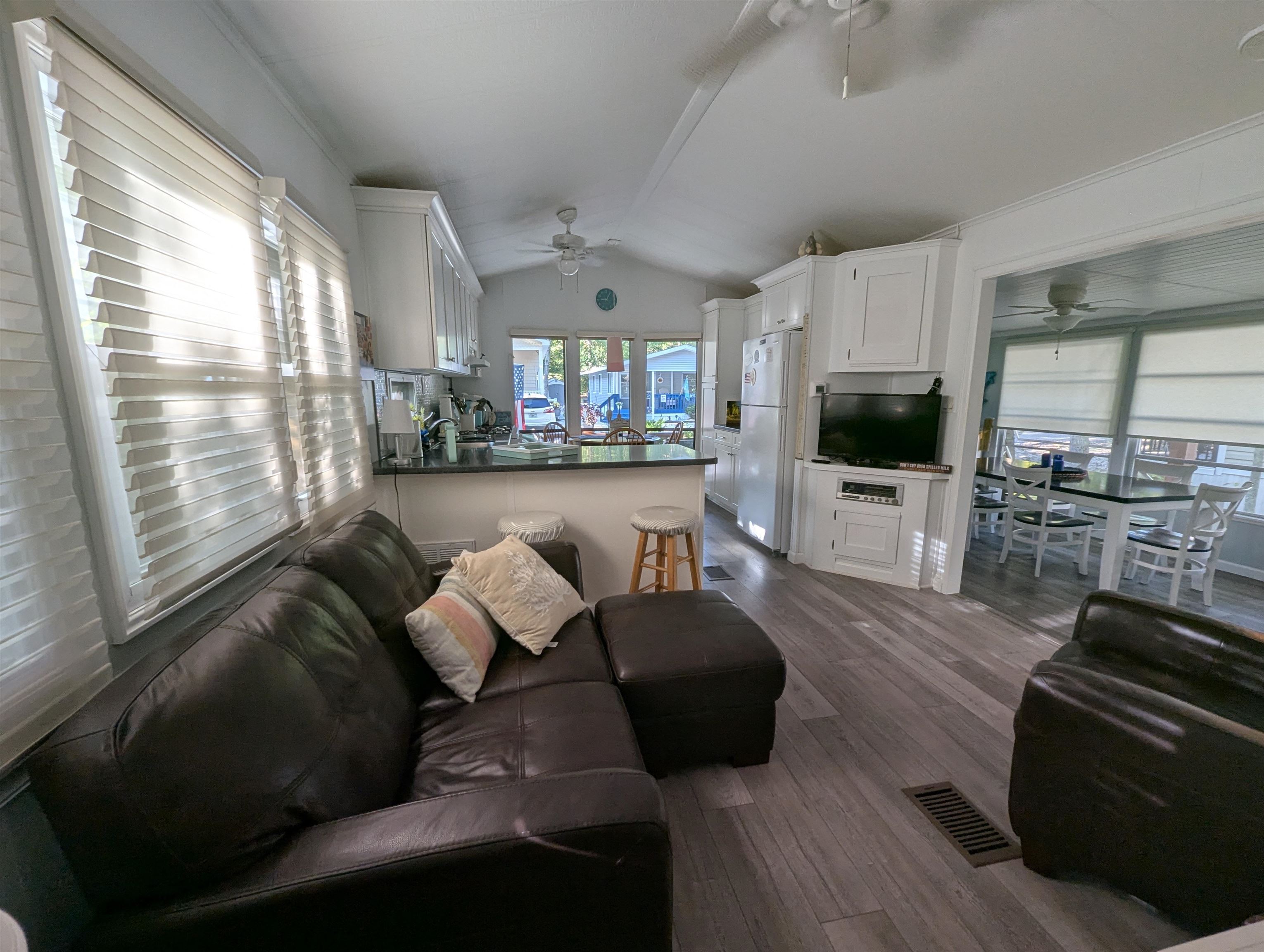 What a lot!!!! This unit is located in the back of the park with the utility company right away behind them, so it offers an ample size large lot and no one behind you. Lots of upgrades including the highly desirable roof over. This unit has 2 full bedrooms, tons of space for growing families and an open full size updated kitchen. Lots of storage, full front porch, large shed with extra hot water heater that services your outdoor shower. A one-of-a-kind location.