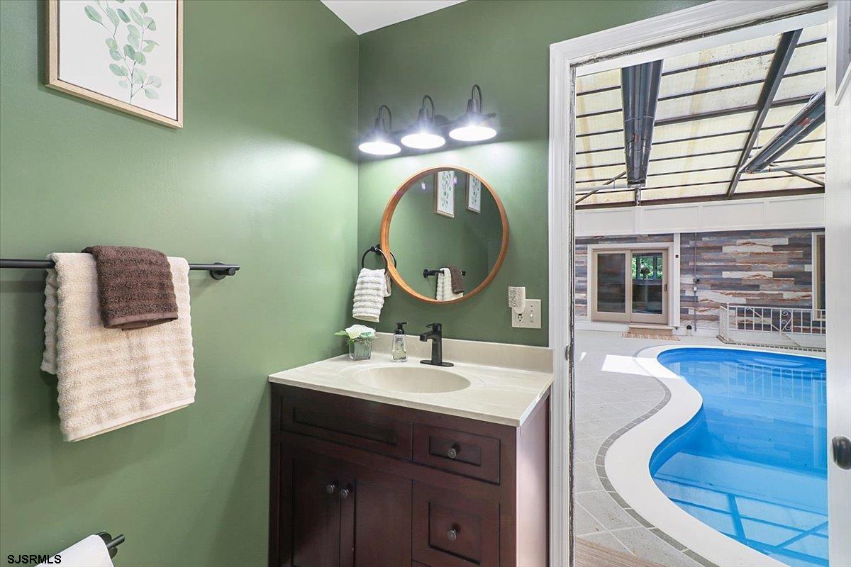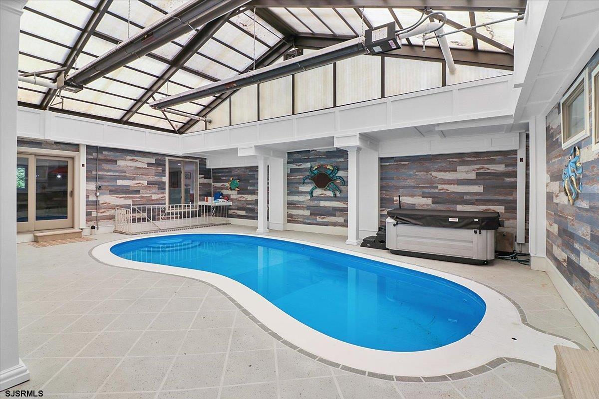 Palatial estate situated on a sprawling 1.12 acre lot with spectacular water views. Exceptional upgrades throughout , magnificent heated, indoor- salt water pool and jacuzzi . Pool has heated ,retractable roof. Real brick & wide wood plank flooring. Boat dock and ramp permit included. Rear grounds feature an unfinished large structure ideal for in-law suite, au pair quarters or home office. 2 car Garage plus parking for 4 + cars Additional features Quartz oversized kitchen island, Zline industrial stove assembly, Makellos custom cabinetry. Huge finished basement w full bathroom leading to pool & bonus room. All new electric, primary bedroom steam shower, exterior paint, pavers, custom front door Experience the Gold Coast of Mays Landing. Large Finished basement ideal for a home theatre, game room and gym. By appointment