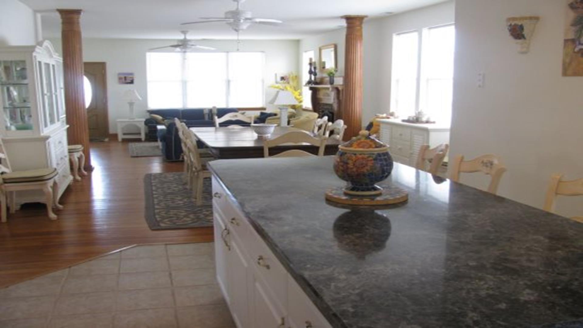 Immaculate 2 story home with all of the amenities and only two blocks from the boardwalk setting the stage for a memorable family vacation!  The main living area is based on an open floor plan and includes large eat-in kitchen w/ Center Island, Dining area and large Living room with 40†Flat Screen TV and a sleeper sofa for additional guests.  The main living area also includes a sunroom with access to a large covered deck that overlooks Atlantic Avenue providing unparalleled views to many of the parades in North Wildwood and if you want to cook out, a grill is provided for your convenience. Two bedrooms on the main floor flank the large central bathroom complete with shower and soaking tub.  The Master bedroom, also on the main floor includes a full bath.  The second floor contains two bedrooms one of which converts to a sitting area complete with a 32†flat-screen TV and full bath.  Central air, WiFi, and Cable Television are provided throughout the house.  Come and visit with us and make your vacation dreams come true this summer, we’ll even provide the beach chairs, bikes and Boogie boards for your fun in the sun (all you need to do is bring the sunscreen)!!  We do prefer families and ask that the responsible persons are at least 25 years old.  This immaculate home sleeps 14.