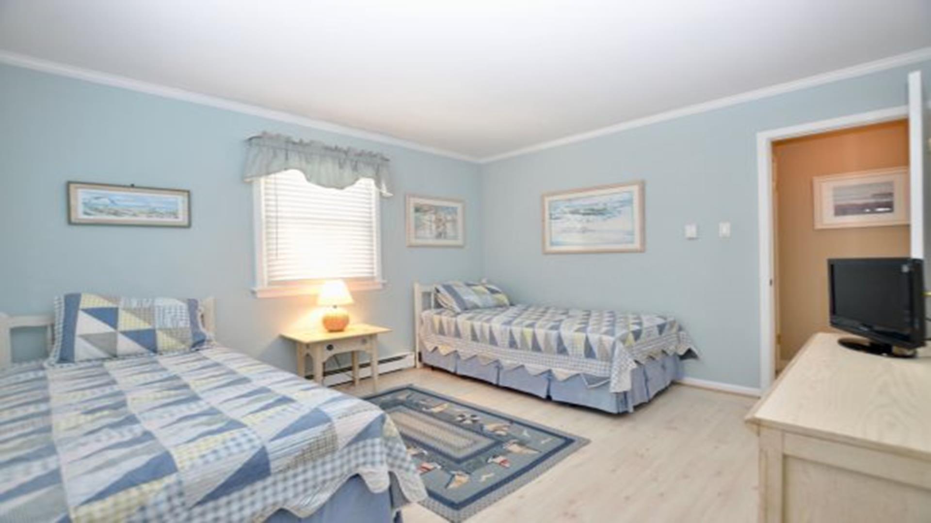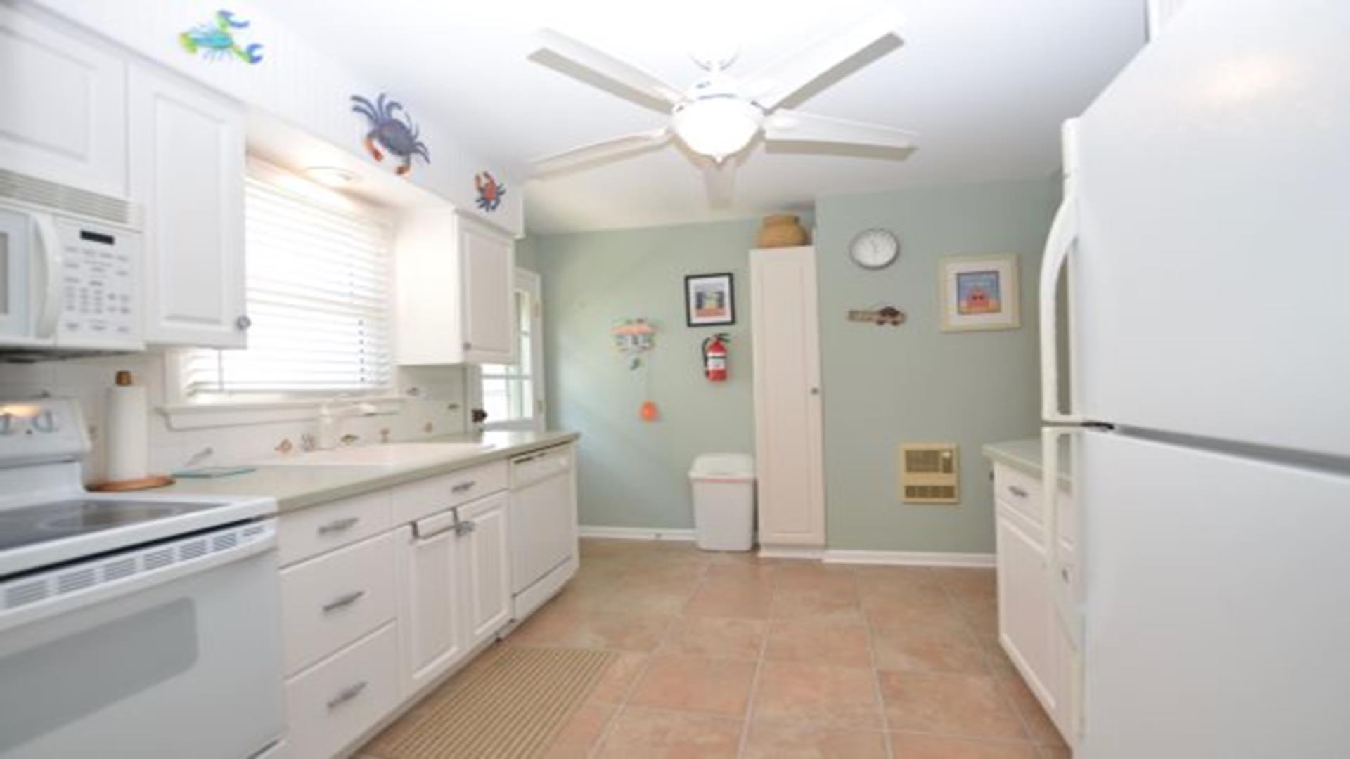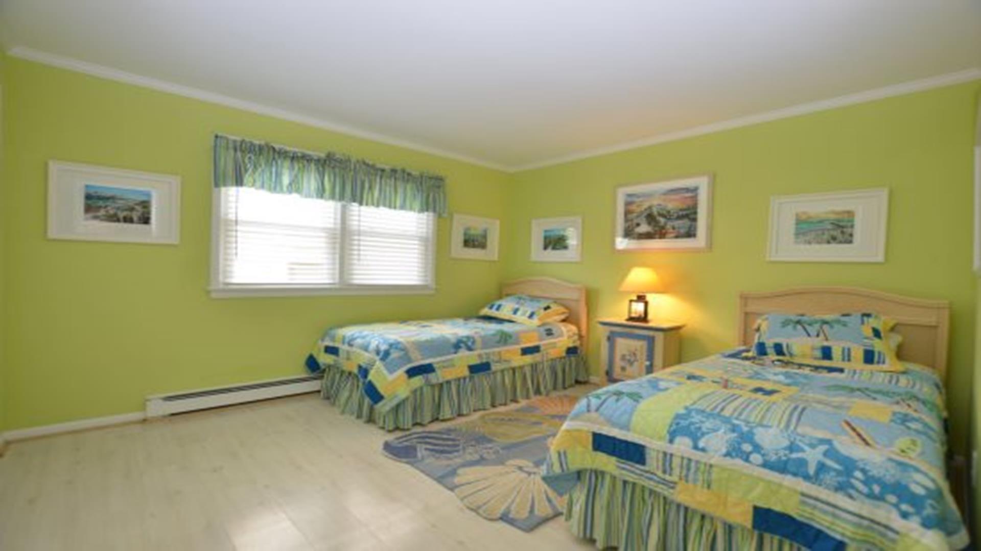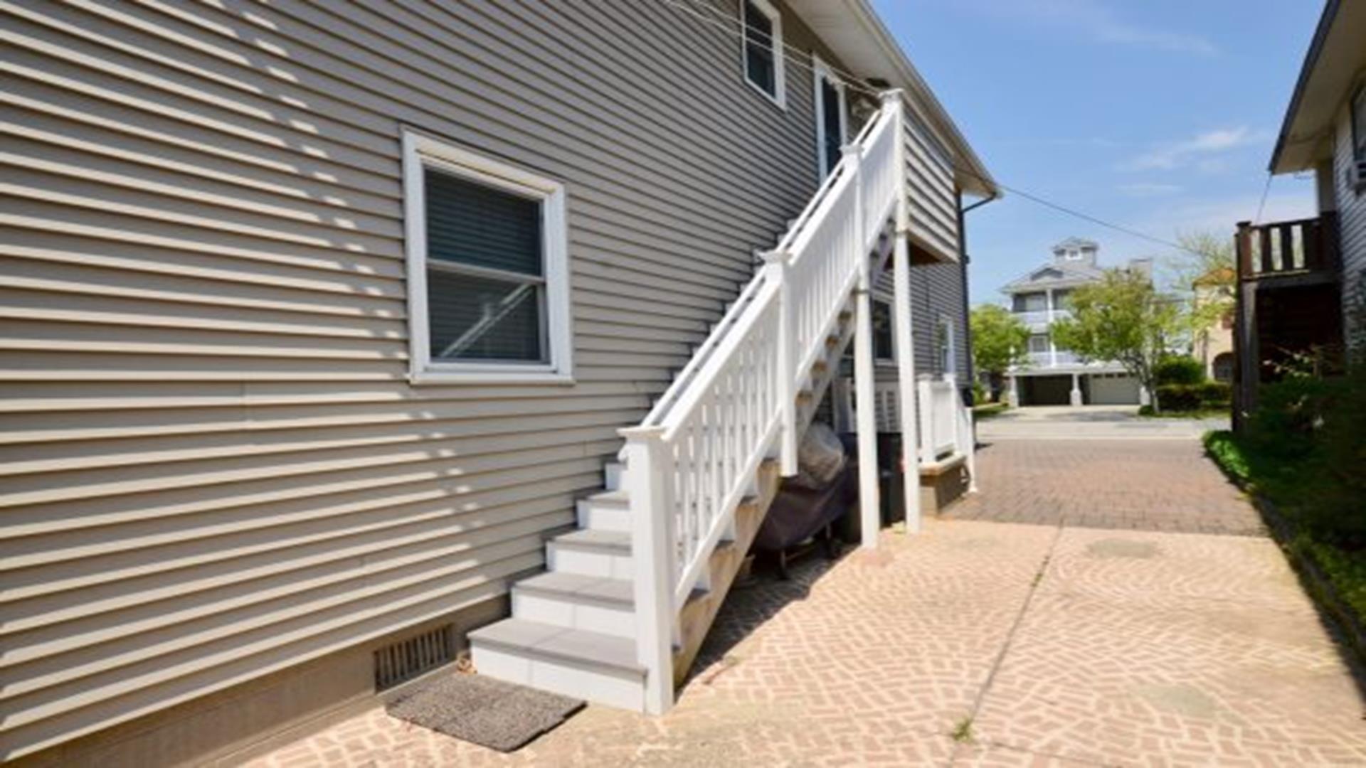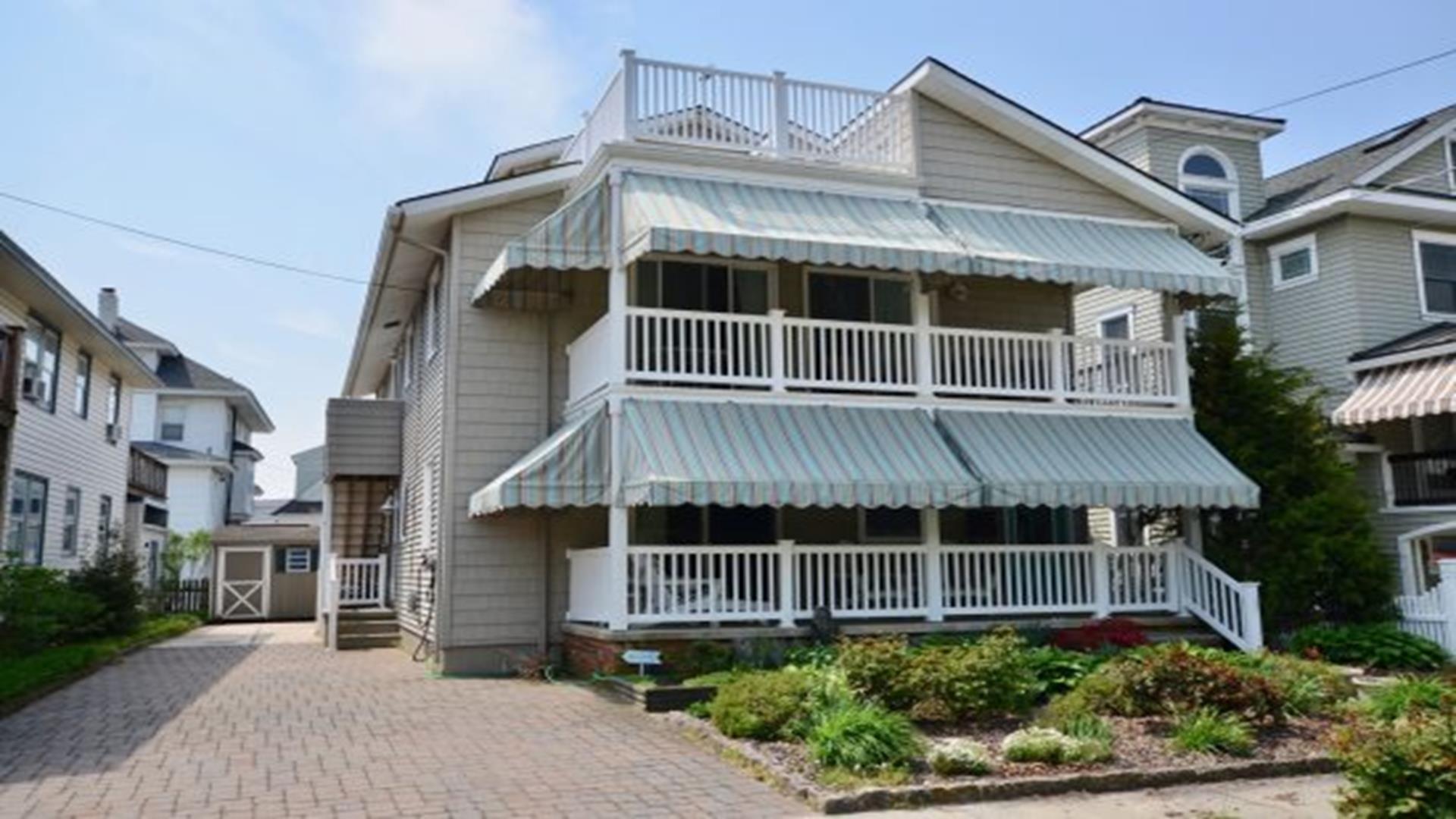 Dog-Friendly Gardens, just a half-block from the beach! This bright and beautiful 1st floor offers a charming base from which to enjoy your summer vacation. The wide front porch with awnings is a great place to sit and enjoy the flowers blooming profusely in the front yard. Inside, the crisp kitchen sparkles and the open living and dining area offer comfortable seating for 6. Beach scenes from Ocean City, NJ and around the world are displayed on the walls. The 3 large bedrooms include a master with king bed and half bath, and the hallway full bath has a tub and shower combination. There is an outdoor dining area along the driveway with a patio table, umbrella, and 6 chairs, and a 5 burner stainless steel gas grill for your use. Too much sun? Stay inside and enjoy the upgraded cable, stereo, CD player, DVD, and wireless internet. Want to bring Fido along? That s okay too. A dog is permitted in this property with an additional nonrefundable charge of $300 and is subject to owner approval.