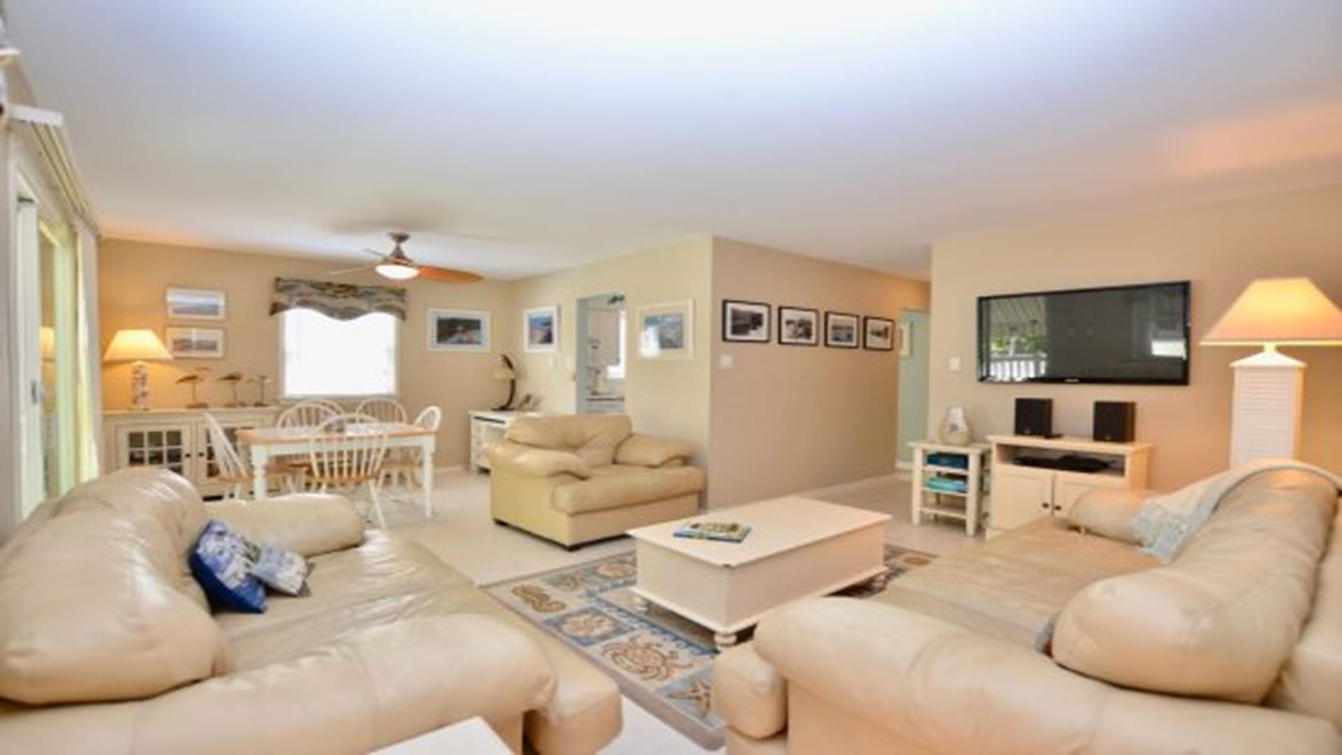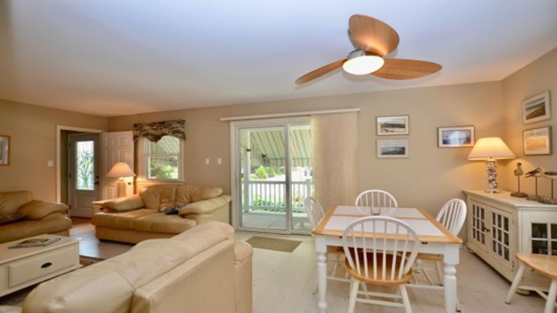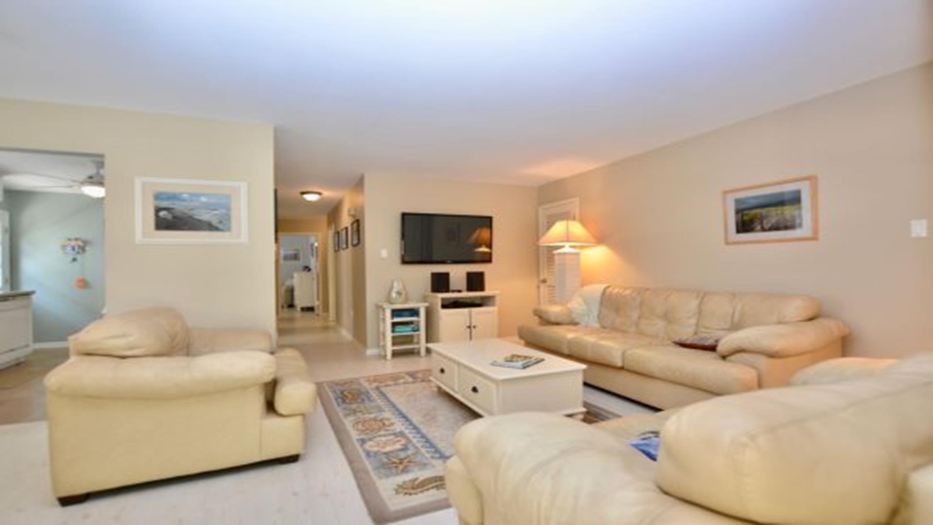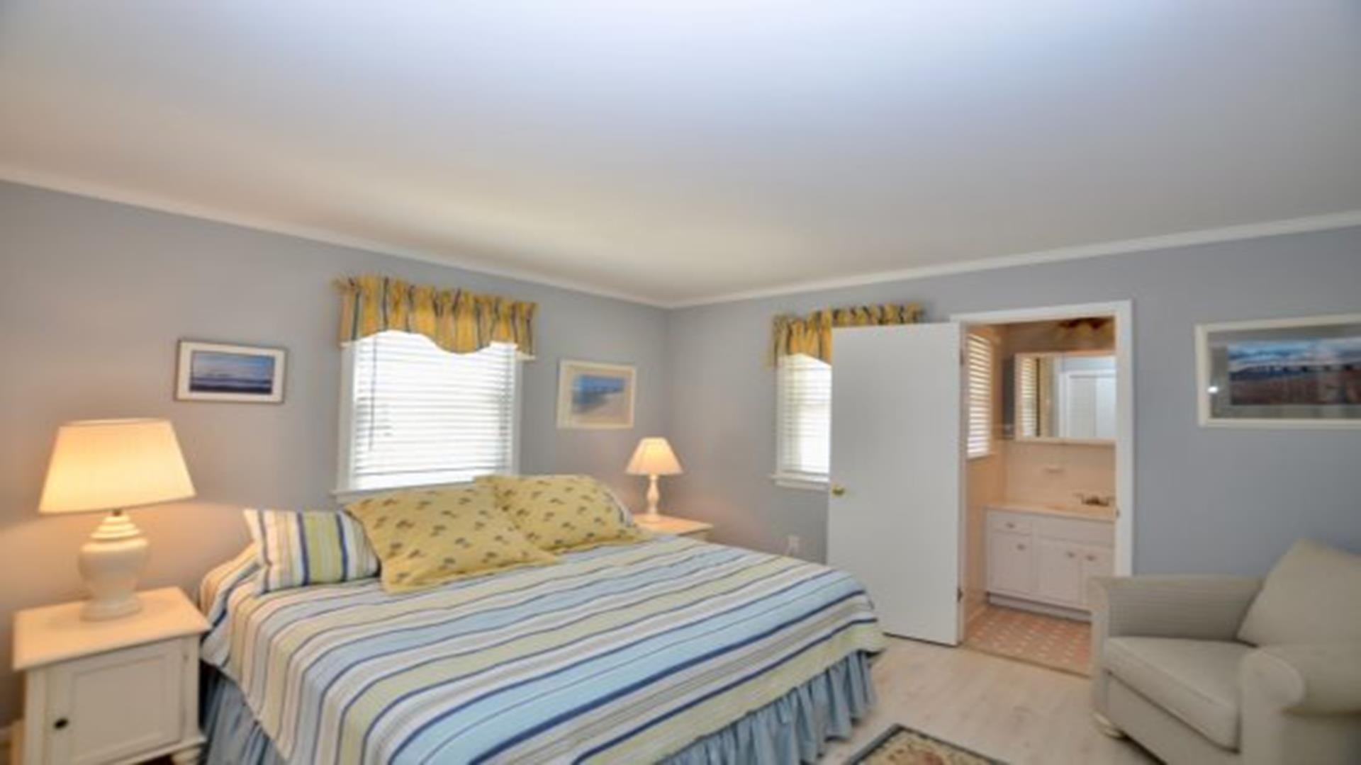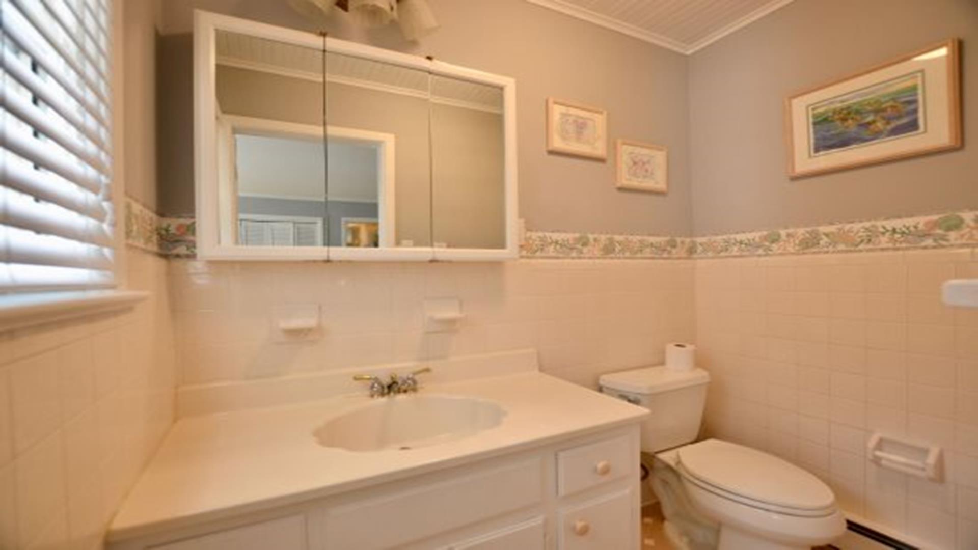 Dog-Friendly Gardens, just a half-block from the beach! This bright and beautiful 1st floor offers a charming base from which to enjoy your summer vacation. The wide front porch with awnings is a great place to sit and enjoy the flowers blooming profusely in the front yard. Inside, the crisp kitchen sparkles and the open living and dining area offer comfortable seating for 6. Beach scenes from Ocean City, NJ and around the world are displayed on the walls. The 3 large bedrooms include a master with king bed and half bath, and the hallway full bath has a tub and shower combination. There is an outdoor dining area along the driveway with a patio table, umbrella, and 6 chairs, and a 5 burner stainless steel gas grill for your use. Too much sun? Stay inside and enjoy the upgraded cable, stereo, CD player, DVD, and wireless internet. Want to bring Fido along? That s okay too. A dog is permitted in this property with an additional nonrefundable charge of $300 and is subject to owner approval.