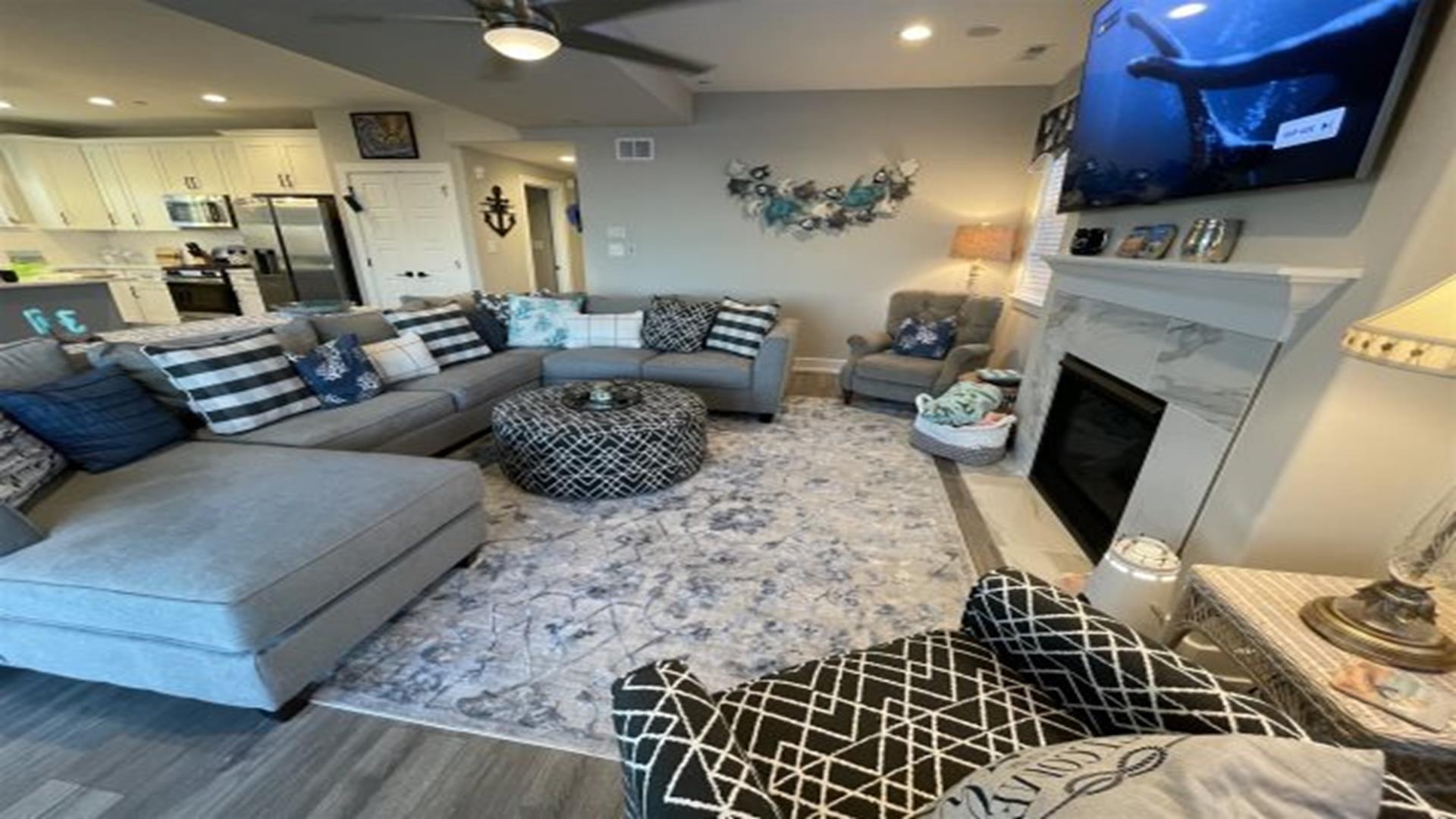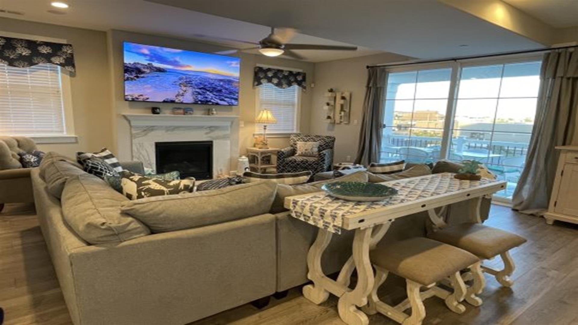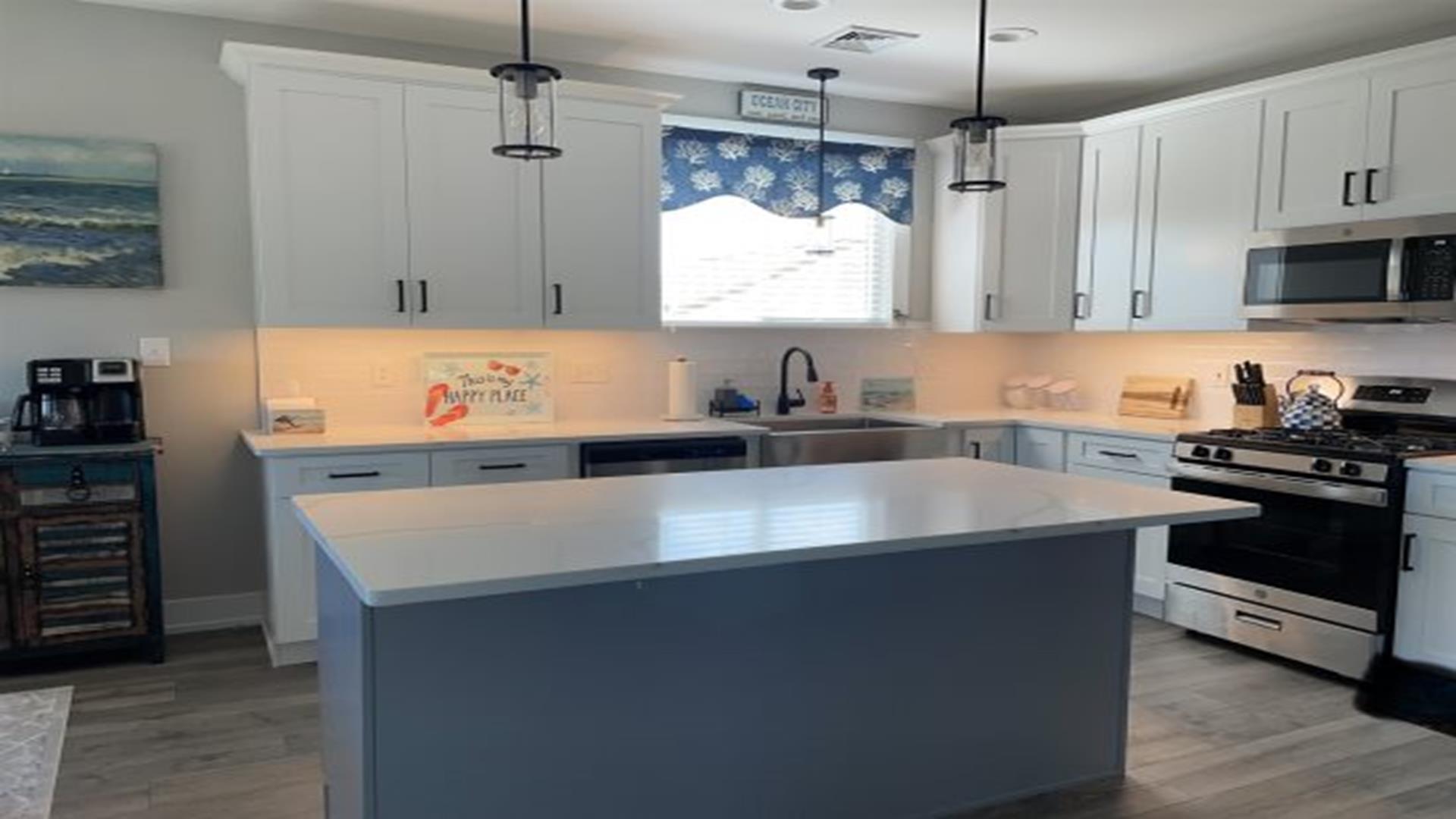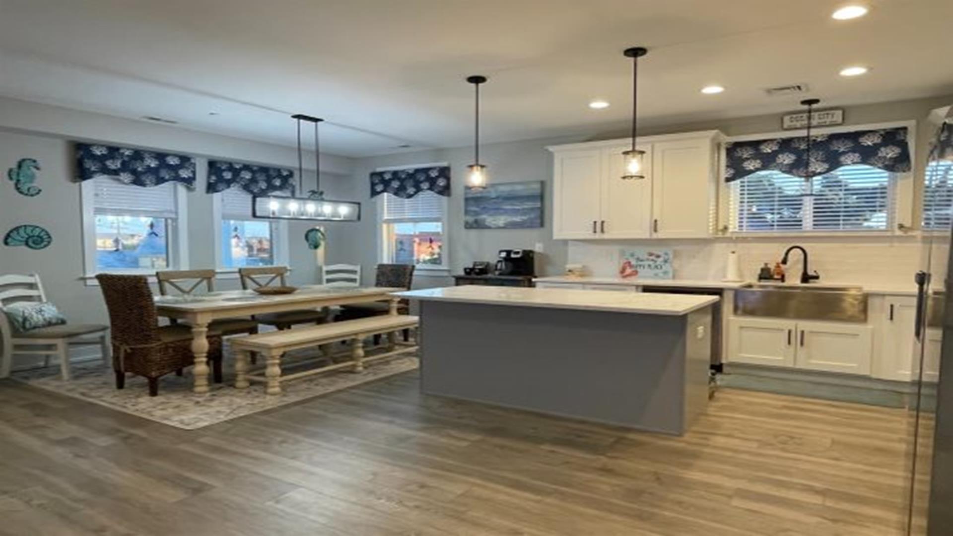 Ready to relax without a care? No need to worry about fuel costs, so just park your car and enjoy your stay in this brand new construction 2nd floor beauty, with 5 bedrooms, 3 full baths, gourmet kitchen with wine fridge & coffee bar. Great location that is close to everything! Easy walk to bay, boardwalk, or enjoy a bike ride on the 9th street bridge path. Just steps away from mini golf or the relaxing yoga studio on the main floor! Better yet, stretch out for a nap on the front porch or spend some time in the fully equipped game room with your family & friends. Includes 8 beach tags and smart TVs in every room. Rain or shine, you re guaranteed to have an amazing vacation!
