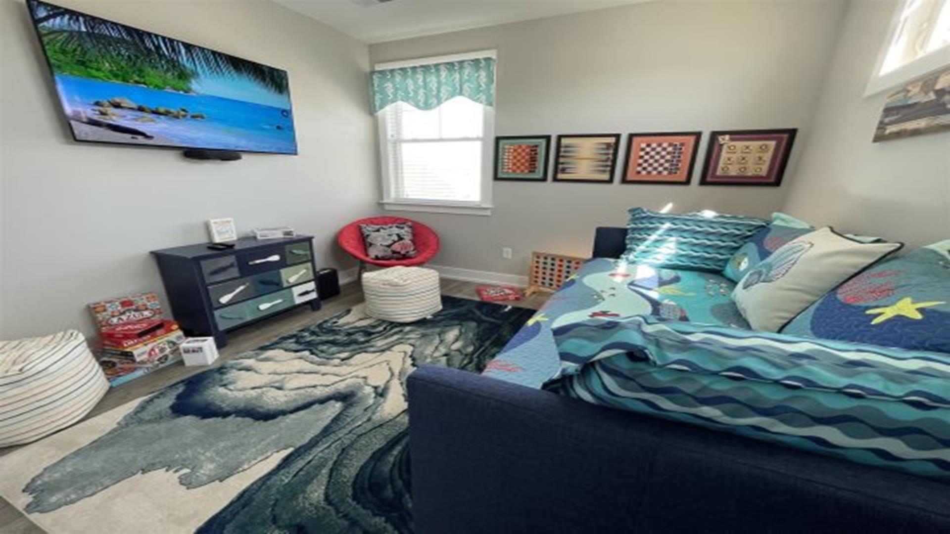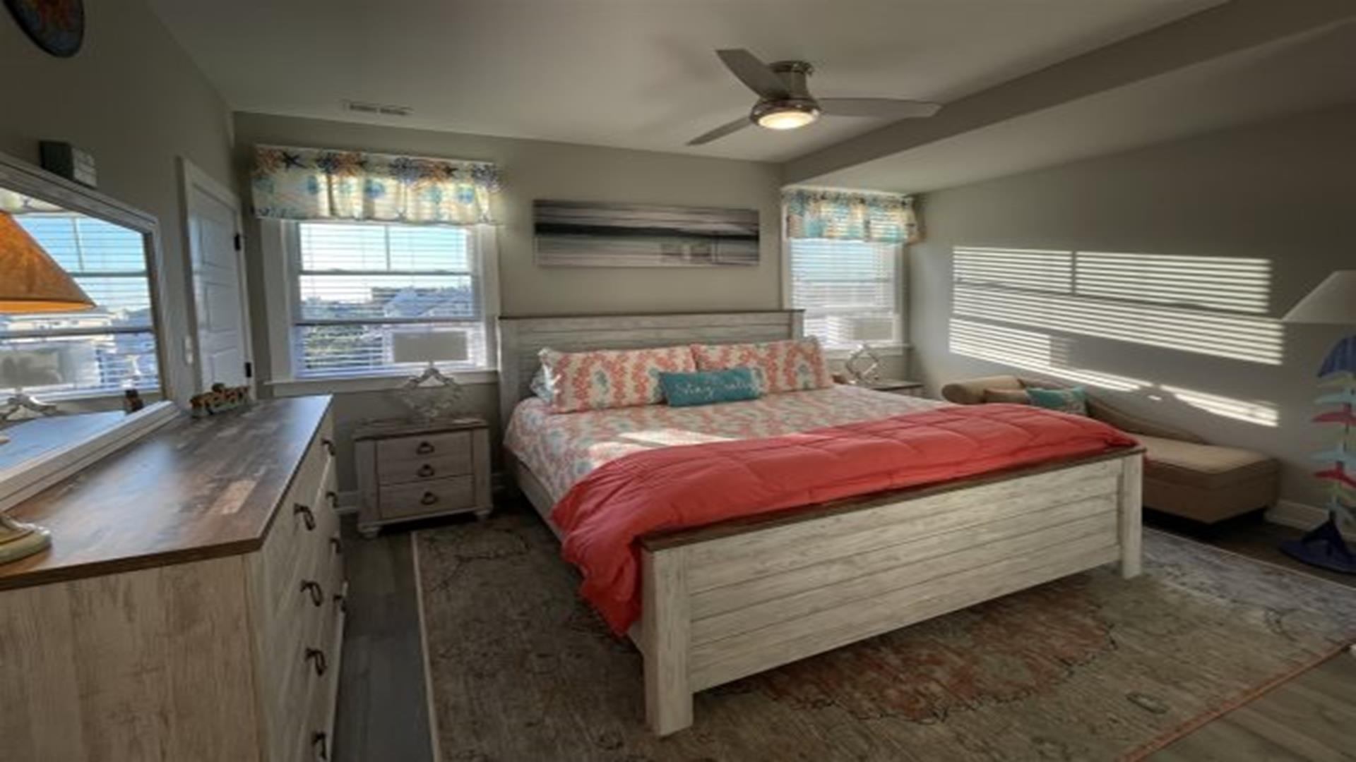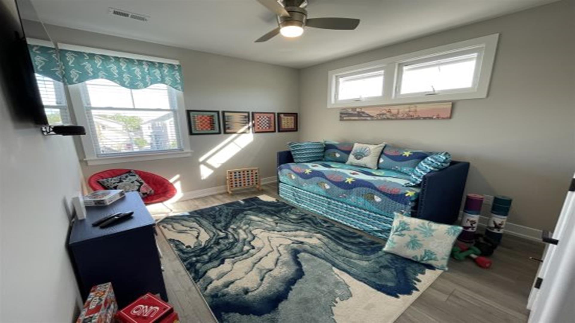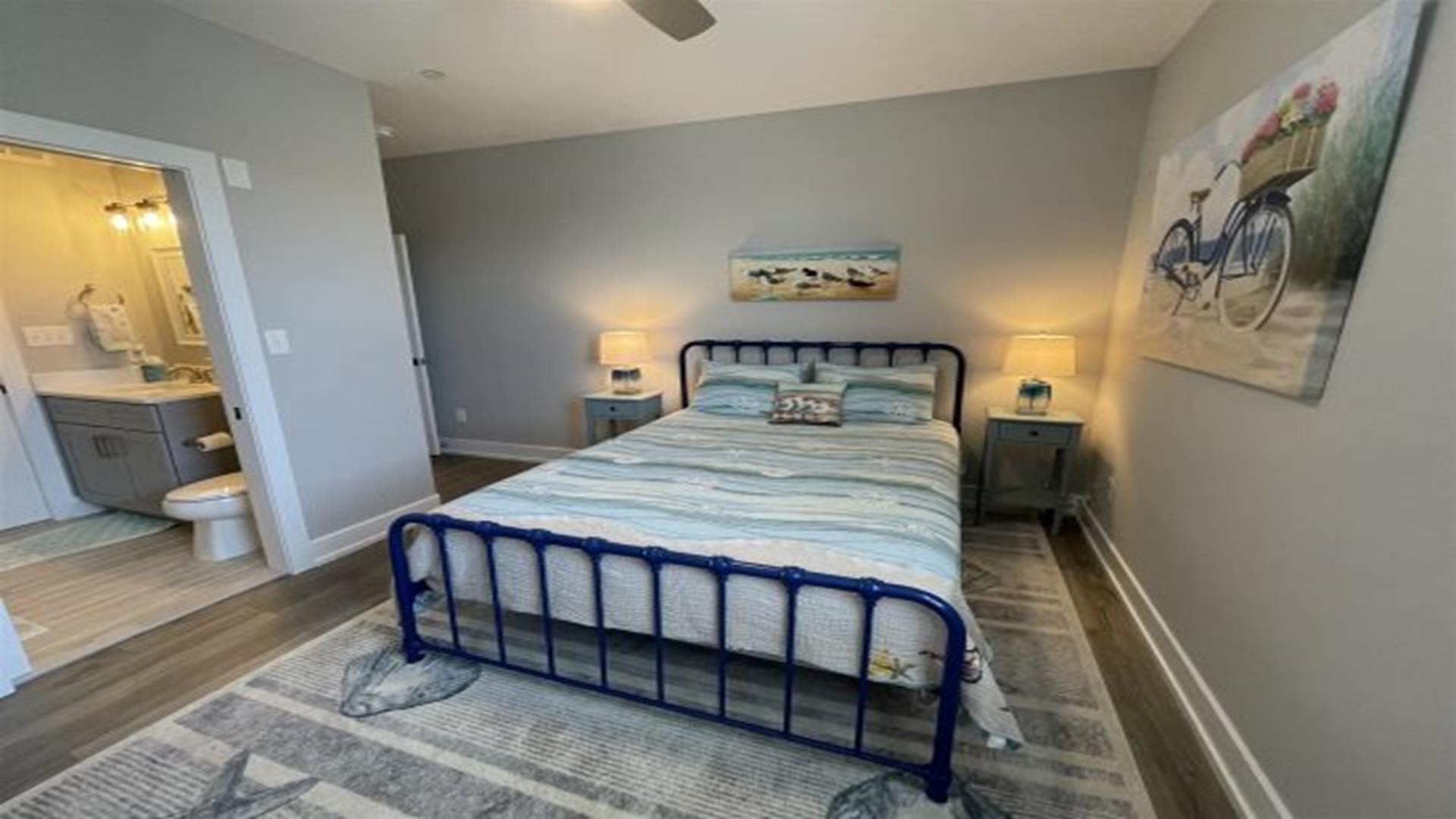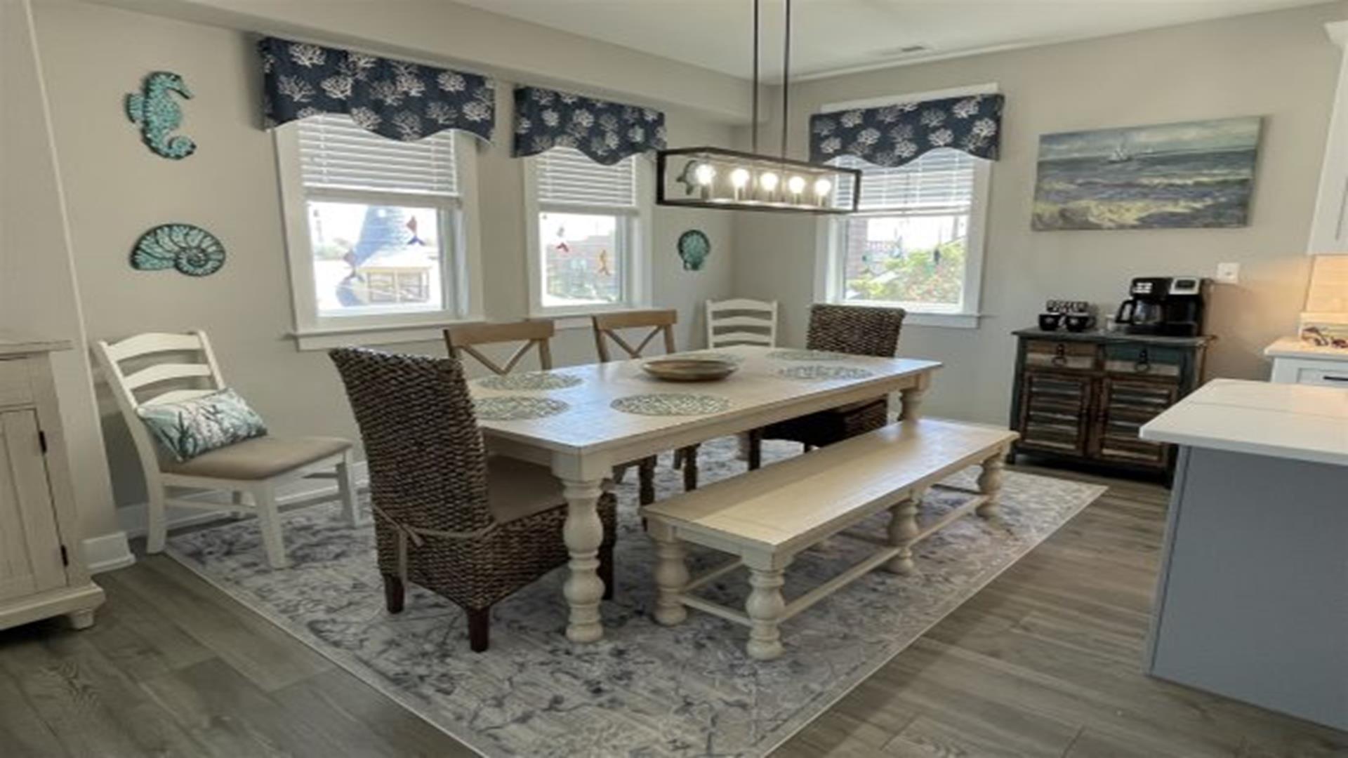 Ready to relax without a care? No need to worry about fuel costs, so just park your car and enjoy your stay in this brand new construction 2nd floor beauty, with 5 bedrooms, 3 full baths, gourmet kitchen with wine fridge & coffee bar. Great location that is close to everything! Easy walk to bay, boardwalk, or enjoy a bike ride on the 9th street bridge path. Just steps away from mini golf or the relaxing yoga studio on the main floor! Better yet, stretch out for a nap on the front porch or spend some time in the fully equipped game room with your family & friends. Includes 8 beach tags and smart TVs in every room. Rain or shine, you re guaranteed to have an amazing vacation!