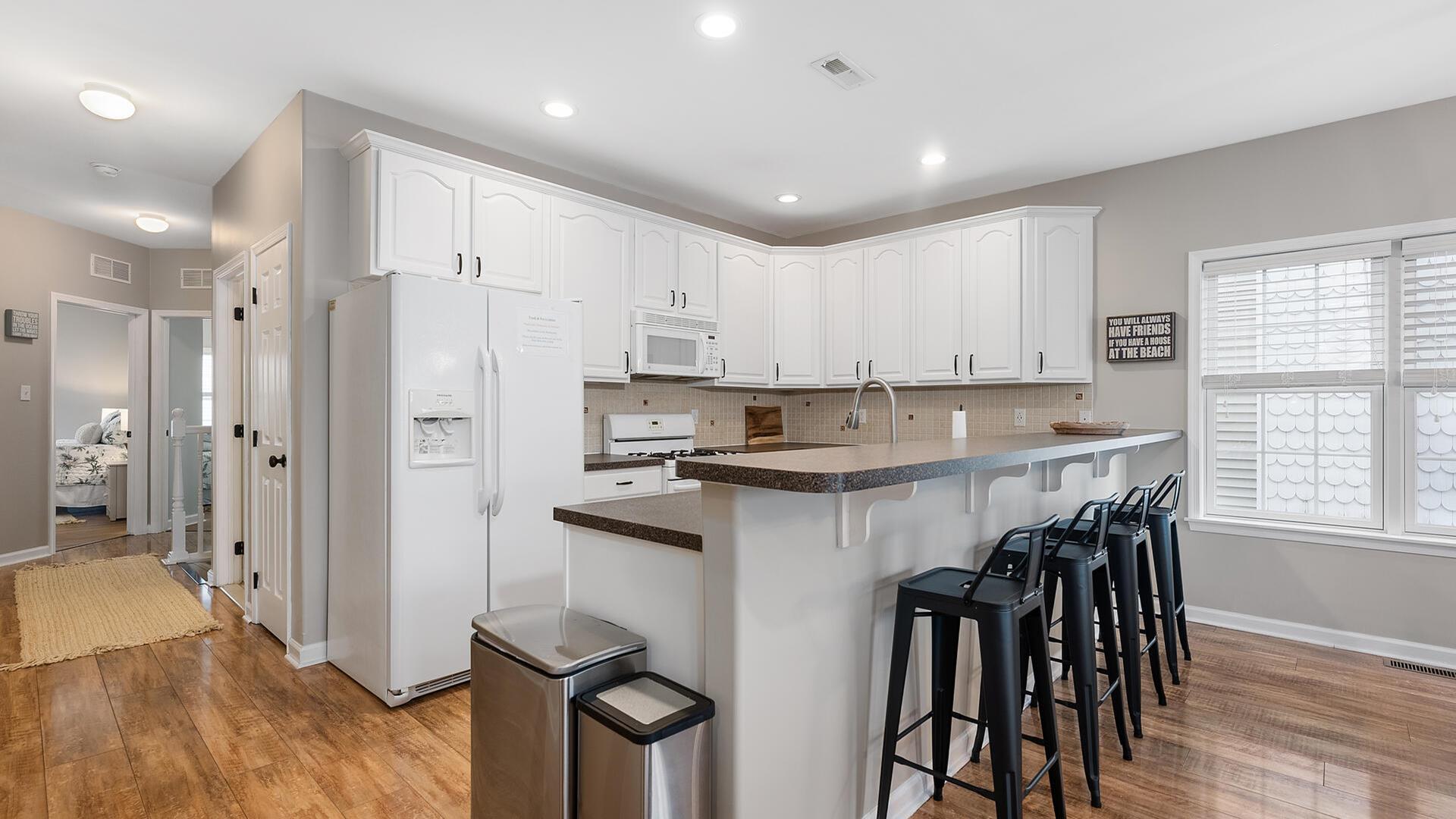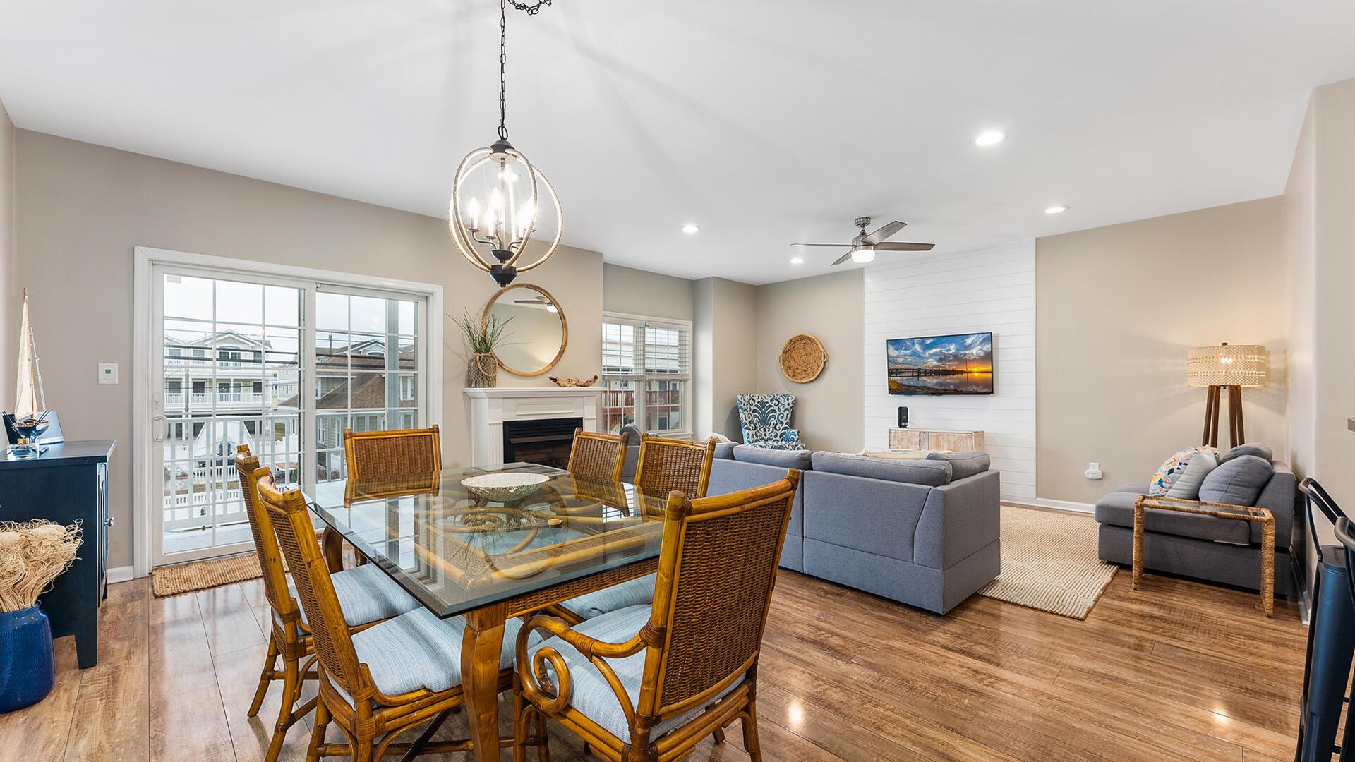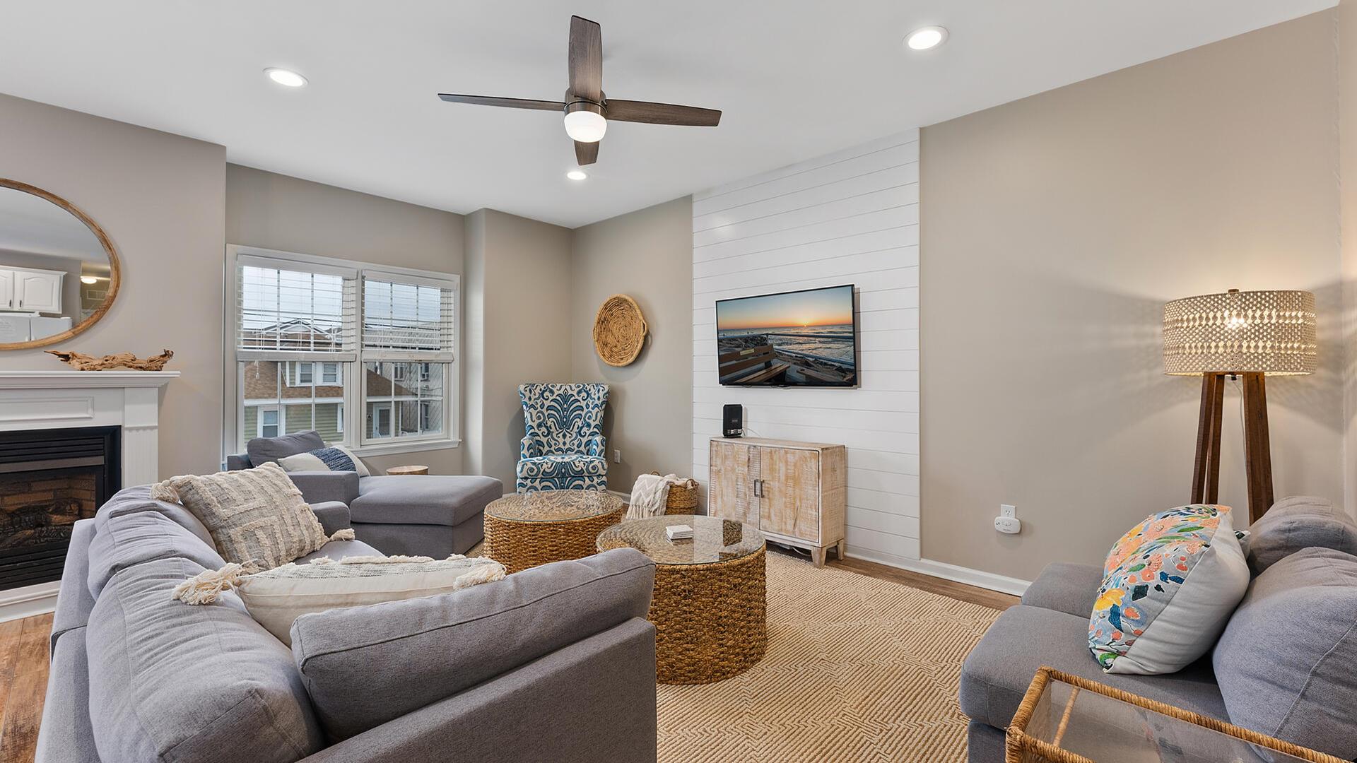 JUST ONE BLOCK TO BEACH AND BOARDWALK AT MOREYS PIER & WATERPARK! This impeccably clean, end unit is bright and airy with many windows throughout. This newly remodeled condo has 4 bedrooms, 4 full and 1 half baths. All bedrooms are onsuite making this the perfect retreat for 4 couples or adult families. The 2-story floor plan is especially generous in size and allows for ample room for all to have their own space. The open floor plan provides for a large great room. This is the perfect spot to gather and watch or game play games with friends. Lots of light and a balcony with seating is directly off this living area. Cooking is a breeze with this well-equipped kitchen. Refreshed and ready to rent! This central location is ideal for a quick walk to the beach, boardwalk, restaurants, and nightlife nearby! Wildwood is experiencing a rebirth. Come stay in this clean, renovated, and well priced location! Off street parking for three cars is provided two in the garage and one in the driveway. Outdoor shower is located at the rear of the property. The Wildwoods are known for it s spacious, clean, and safe FREE beaches as well as it s nationally known Boardwalk with hundreds of amusement rides, shops, and eateries. There are so many things to do in the Wildwoods from bike riding, running, sunbathing, waterskiing, fishing, excursions, nightlife, restaurants and so much more. From sunrise to sunset, you can make yourself as busy or as relaxed as you want to be.