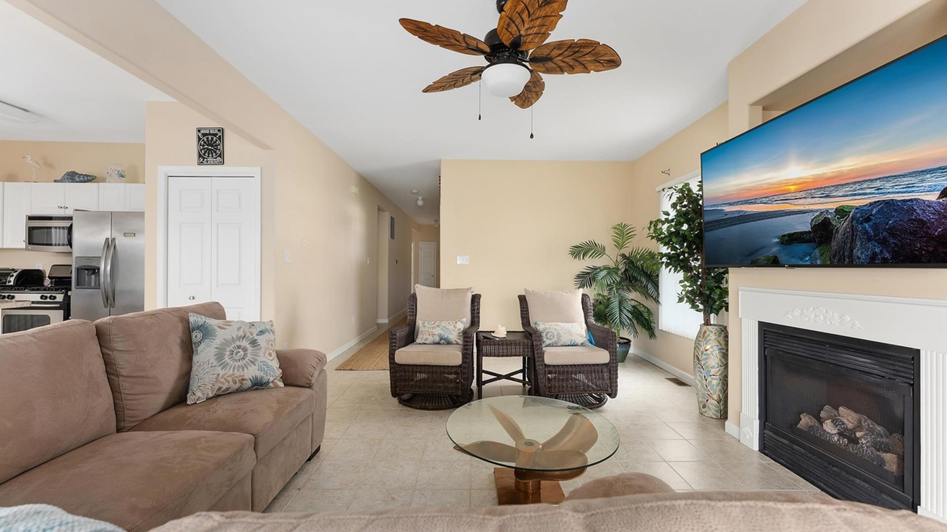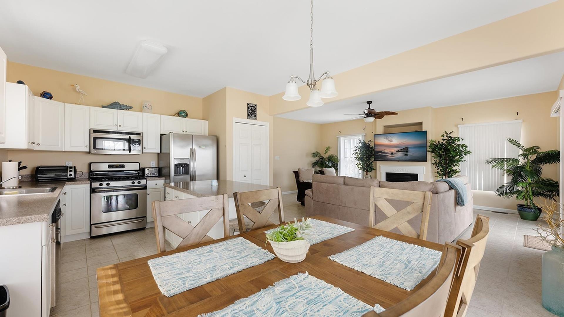 Perfect beach condo for the family! Short walk to beach and Convention Center. This is a beautifully maintained 4 bedroom and 2 bath condominium that sleeps 10. It is only an 8 minute walk to the beach (3 blocks)!  In walking distance to Mudhen, Poppi's Pizza, Dogtooth and many other restaurants, the Dog Park, playgrounds, miniature golf, ice cream shops and the Convention Center. It includes a private garage, kitchen with island, living room (& fireplace in chillier months), private washer and dryer and a spacious covered deck.