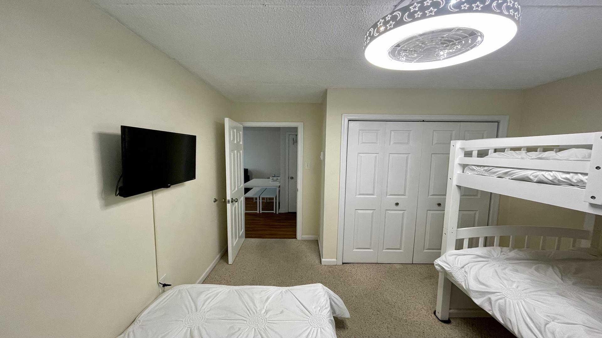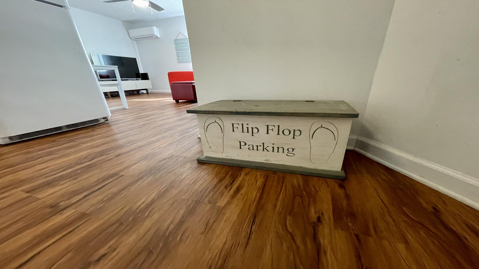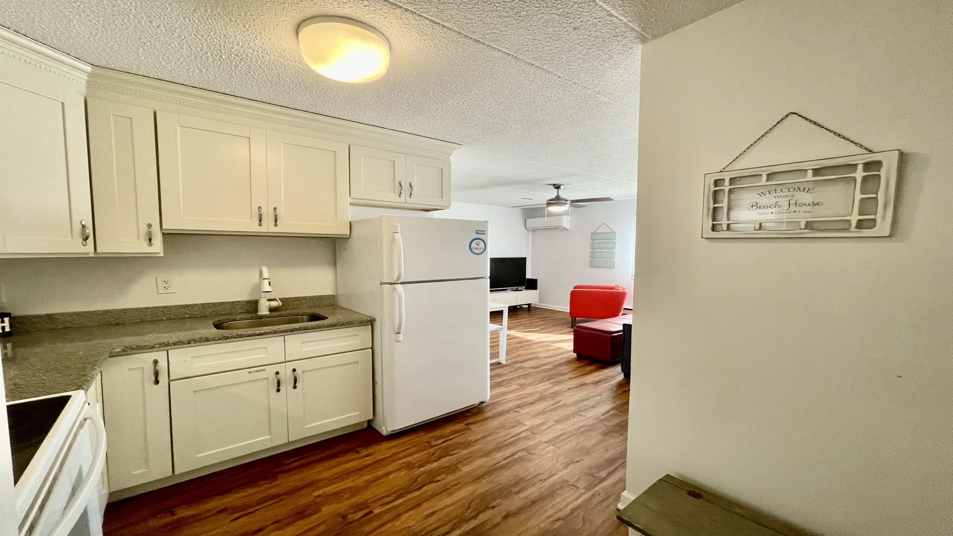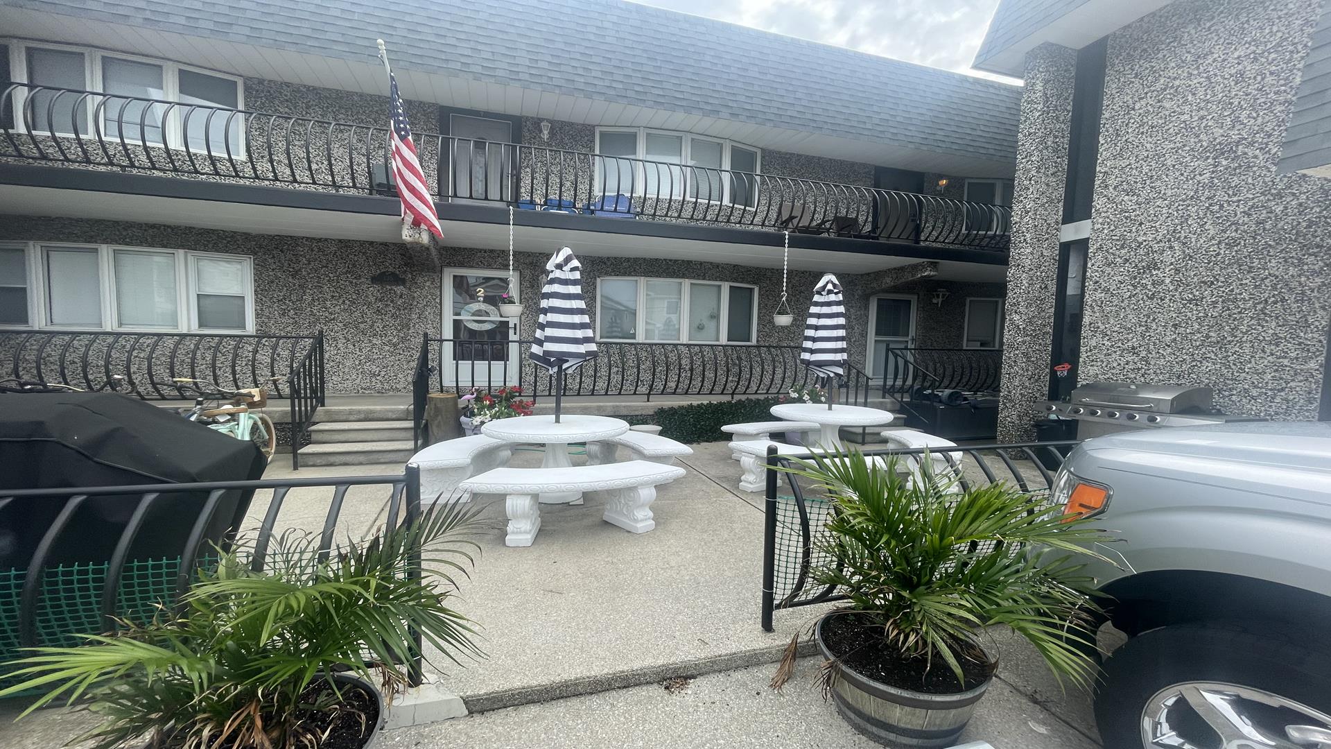 This 2/1 condo is very spacious and sleeps 6 people. It has a good sized kitchen area and a table for dining. Two Bedroom with a single bunk Bed and pull out single trundle bed. The other has a Queen Bed. Nice and Bright inside and one parking spot in front. The common patio has plenty of seating, bike storage and grills for outdoor dining! It is within walking distance to the beach, Duffers, Brittons Bakery and the Bike Path, Crest Pier, Playground and let's not forget the World Famous Boardwalk!